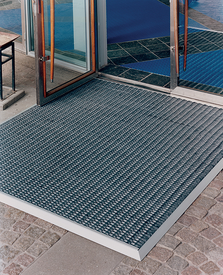 Eazycare Wave ist eine besonders strapazierfähige Schmutzfangmatte, die vor allem durch ihre solide Machart überzeugt. Sie besteht aus einer Kombination von Aluminiumstäben und Gummiprofilen, die mit Stahldrähten verbunden sind. Die robuste Matte sieht auch nach langjähriger Benutzung aus wie am ersten Tag. Bei Verwendung der Eazycare Wave werden bis zu 80 % des Schmutzes in der Matte zurückgehalten und somit der Reinigungsaufwand in den nachfolgenden Räumen deutlich reduziert. Gleichzeitig führt Eazycare Wave zu einer wesentlich längeren Lebensdauer der Teppiche und Fußböden. Die Matte wird ohne Rahmen geliefert, der einzeln dazubestellt werden kann.