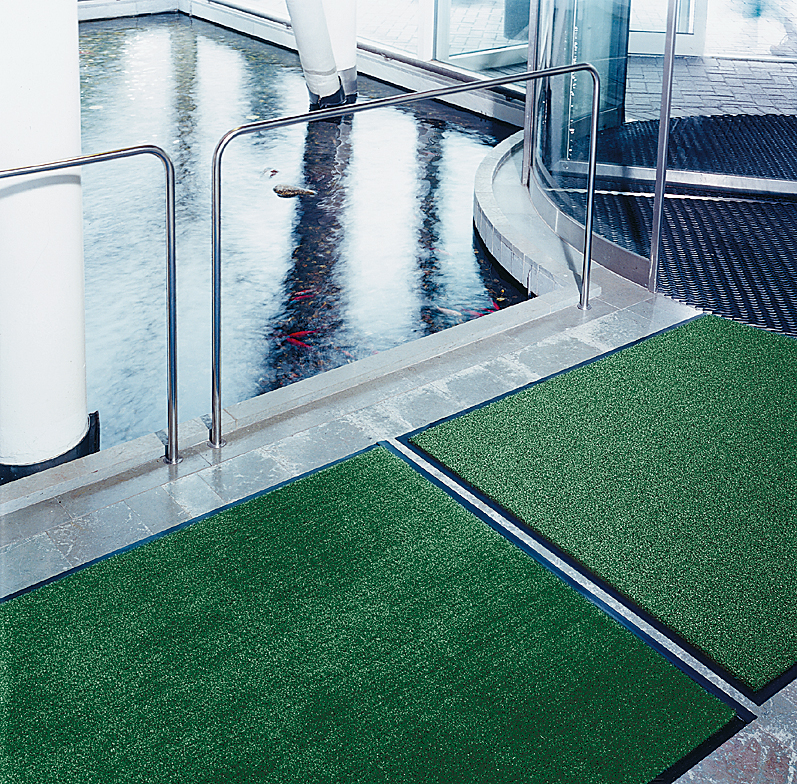 Der Eingangsbereich ist ein wichtiges Aushängeschild für die Unternehmen, denn hier halten sich alle Besucher zumindest für kurze Zeit auf. Eazycare Aqua-Matten von Miltex schaffen die Voraussetzung für einen ersten guten Eindruck. Die voll synthetischen Matten gewährleisten einen sauberen und trockenen Boden und schützen den Belag darunter vor frühzeitiger Abnutzung. Die Olefinfasern der Eazycare Aqua dienen zum Abstreifen der Schuhe und befreien sie zuverlässig vom gröbsten Staub sowie von Matsch und Nässe. Eazycare Aqua nimmt selbst feinsten Schmutz sehr gut auf und besitzt ein fantastisches Aufsaugvermögen.